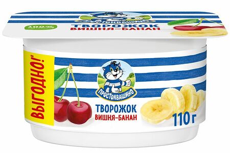 Творожок Простоквашино с вишней и бананом 3.6%, 110г доставка