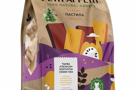 Срок годности в днях: 180Состав: Сахар, вода питьевая, патока, пюре яблочное, измельченные плоды тыквы, апельсина, яблочная клетчатка, клетчатка семян чиа, желирующий агент - агар, регулятор кислотности: кислота молочная; белок яичный сухой, красители: кармины, куркумин.Пищевая ценность: Белки: 0.8Жиры: 0.1Углеводы: 80Страна изготовления: РоссияПроизводитель: Petit Appetit