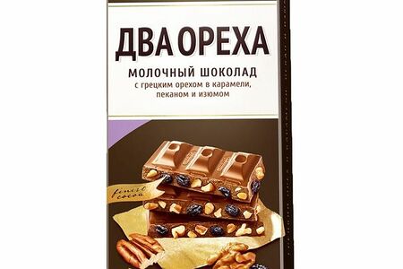 Шоколад Победа вкуса Два ореха молочная с грецким орехом в карамели-пеканом и изюмом, 100г доставка