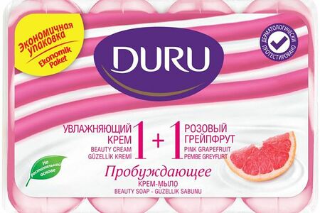 Мыло Duru 1+1 Увлажняющий Крем и Розовый Грейпфрут туалетное, 4х80г доставка