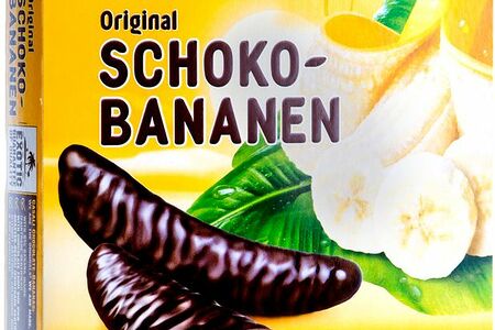 Срок годности в днях: 275Состав: Сахар, сироп глюкозно-фруктозный, какао-масса, какао-масло, банановая мякоть, агент влагоудерживающий сорбит, желатин, желирующий агент агар, регулятор кислотности лимонная кислота, ароматизаторы, эмульгатор лецитины, краситель куркумин, крахмал пшеничный. Может содержать незначительное количество молока. Содержит подсластитель.Пищевая ценность: Белки: 1.8Жиры: 11.8Углеводы: 67.5Страна изготовления: АвстрияПроизводитель: Casali