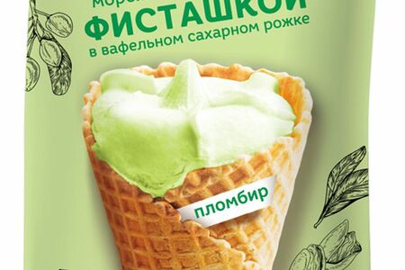 Мороженое Чистая линия пломбир с фисташковой пастой в вафельном рожке 12% 110г доставка
