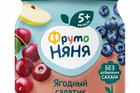 Пюре Фрутоняня Ягодный Салатик из яблок с черникой и вишней с 5 месяцев 100г доставка