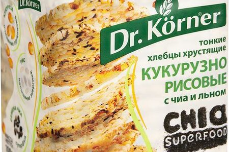 Хлебцы Dr.Korner кукурузно-рисовые с чиа и льном без глютена, 100г доставка