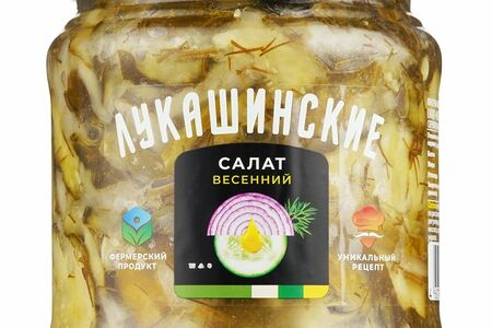 Срок годности в днях: 730Состав: Огурцы свежие, лук, масло растительное подсолнечное, регулятор кислотности - уксусная кислота, соль, сахар, пряная зеленьПищевая ценность: Калорийность: 75Белки: 0.8Жиры: 4.8Углеводы: 7.2Страна изготовления: РоссияПроизводитель: Лукашинские