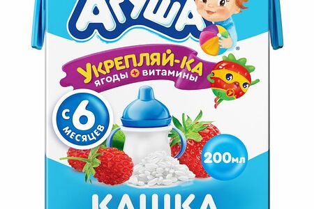 Каша Агуша укрепляй-ка молочная рисовая с клубникой земляникой и яблоком с 6 месяцев 2.7%, 200мл доставка