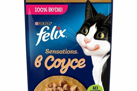 Корм Felix Sensations в соусе с индейкой со вкусом бекона для взрослых кошек, 75г доставка