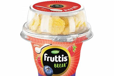 Срок годности в днях: 161Состав: Молоко нормализованное, вода питьевая, наполнитель (сахар, кусочки черники, вода питьевая, малина, сахарный сироп, загуститель дикрахмалфосфат оксипропилированный, регулятор кислотности цитраты натрия, краситель кармины, ароматизатор, сок красной свеклы концентрированный, ароматизатор, регуляторы кислотности: лимонная кислота, цитраты кальция и лактат кальция; пектин), сахар, глюкозно-фруктозный сироп, загуститель дикрахмаладипат ацетилированный, сыворотка сухая молочная, пищевой желатин, лактоза, закваска. nСостав хлопьев: крупа кукурузная, сахар, экстракт ячменно-солодовый, соль пищевая. Продукт может содержать незначительное количество: пшеничной, овсяной круп, молока, миндаля, арахиса, фундука и соевого лецитина.Пищевая ценность: Калорийность: 95Белки: 2.4Жиры: 2.5Углеводы: 16Страна изготовления: РоссияПроизводитель: Fruttis