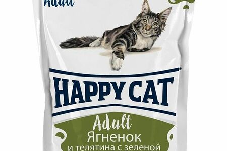 Корм Happy Cat Ягнёнок и телятина с зелёной фасолью кусочки в желе для кошек, 100г доставка