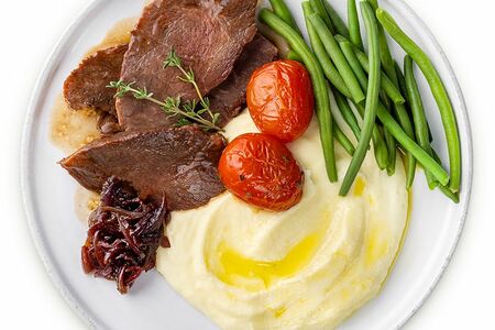 Томленые говяжьи щечки с пюре из картофеля и сельдерея и луковым чатни Шеф Перекрёсток, 295г доставка
