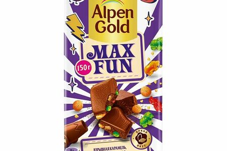 Шоколад молочный Alpen Gold Max Fun взрывная карамель-мармелад-печенье, 150г доставка