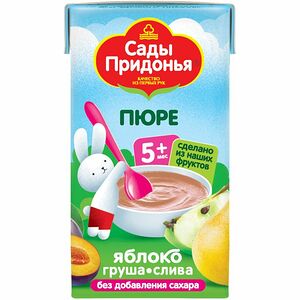 Срок годности в днях: 365Состав: Пюре из чернослива концентрированное, вода питьевая специально подготовленная. Без добавления сахара. Содержит сахара природного происхождения.Пищевая ценность: Калорийность: 74Белки: 0Жиры: 0Углеводы: 18.5Страна изготовления: РоссияПроизводитель: ФрутоНяня
