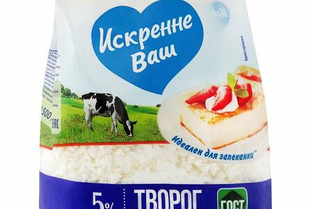 Творог Искренне Ваш рассыпчатый 5%, 500г доставка