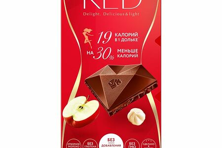 Срок годности в днях: 397Состав: Подсластители: мальтит, эритрит; полидекстроза (наполнитель); сухое цельное молоко; масло какао; какао тертое; сухая молочная сыворотка; яблочные желейные кусочки (яблочный сок, яблочное пюре, цитрусовые волокна, масло какао, натуральные ароматизаторы, пектин (агент желирующий), концентрат лимонного сока, корица) 6%; дробленый фундук 2%; цедра апельсина 0,5%; эмульгаторы: лецитин соевый, Е476; ароматизаторы. Может содержать орехи (миндаль, макадамия). Содержит подсластители. При чрезмерном употреблении может оказывать слабительное действие. Массовая доля общего сухого остатка какао - не менее 25%; cухого обезжиренного остатка какао - не менее 2,5%; сухого обезжиренного остатка молочных продуктов - не менее 14%; молочного жира - не менее 3,5%. *В одной дольке содержится 19 ккал / 77 кДж (в плитке 18 долек). На 30% меньше калорий за счет пониженного количества жира и отсутствия добавленного сахара по сравнению с обычным молочным шоколадом с орехами.Пищевая ценность: Калорийность: 395Белки: 6.4Жиры: 26Углеводы: 44Страна изготовления: ЛатвияПроизводитель: RED