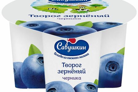 Творог Савушкин 101 зерно + сливки черника зернёный 5%, 130г доставка