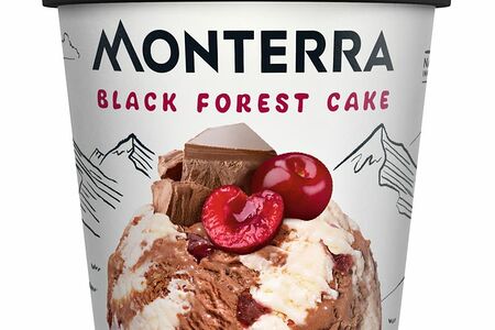 Мороженое сливочное Monterra Black Forest Cake двухслойное шоколадное с вишней и кусочками печенья 9%, 300г доставка