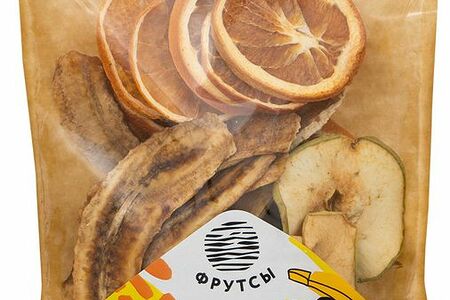 Срок годности в днях: 365Состав: Яблоко, апельсин, груша, банан.Пищевая ценность: Калорийность: 355Белки: 3Жиры: 0.4Углеводы: 82.6Страна изготовления: РоссияПроизводитель: Фрутсы