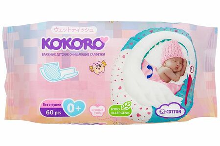 Срок годности в днях: 912Состав: Нетканый материал (микс из двух видов нетканого полотна: одна салфетка структура сетки, вторая салфетка гладкая с хлопком), пропитывающий лосьон. состав пропитывающего лосьона: деминерализованная вода, глицерин, 2-бром-2-нитропропан-1,3-диол, этилпарабен, цетримония бромид, ппг-2 метиловый эфир, глицерет-2-кокоат, пэг-7 глицерил кокоат, динатриевая соль эдта, кокамидопропил бетаин, натуральный бисаболол, лимонная кислота.Пищевая ценность: Белки: 0Жиры: 0Углеводы: 0Страна изготовления: РоссияПроизводитель: Kokoro