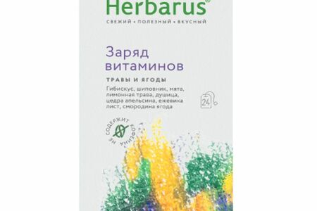Напиток чайный Herbarus Заряд витаминов с травами и ягодами в пакетиках, 24x1.8г доставка
