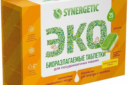 Таблетки для посудомоечных машин Synergetic биоразлагаемые бесфосфатные, 25шт доставка