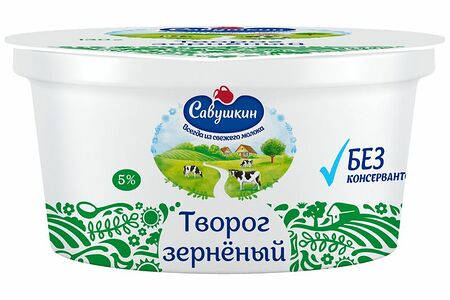 Творог Савушкин 101 зерно + сливки зернёный 5%, 130г доставка