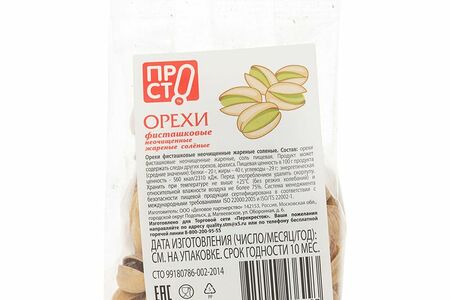 Срок годности в днях: 365Состав: Орехи фисташковые неочищенные жареные, соль пищевая. Продукт может содержать следы других орехов, арахиса.Пищевая ценность: Калорийность: 560Белки: 20Жиры: 40Углеводы: 29Страна изготовления: РоссияПроизводитель: Пр!ст