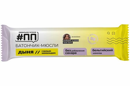 Батончик-мюсли ПП со вкусом Дыня с белым шоколадом, 30г доставка