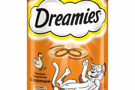 Лакомство Dreamies для кошек подушечки с курицей, 60г доставка