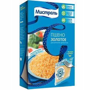 Срок годности в днях: 406Состав: Крупа пшеничная. Содержит глютен.Пищевая ценность: Калорийность: 360Белки: 13Жиры: 1Углеводы: 74Страна изготовления: РоссияПроизводитель: Увелка