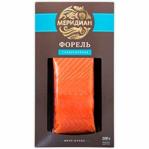 Срок годности в днях: 45Состав: Форель радужная (продукция аквакультуры), соль 4-7%, консервант Е-202, Е-211.Пищевая ценность: Калорийность: 180Белки: 18Жиры: 12Углеводы: 0Страна изготовления: РоссияПроизводитель: Без бренда