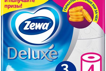 Бумага туалетная Zewa Deluxe 4шт белая 3 слоя доставка