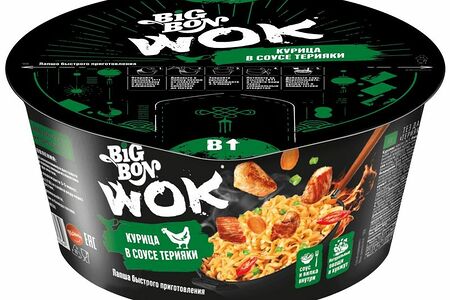Лапша Big Bon Wok быстрого приготовления Курица в соусе терияки, 85г доставка