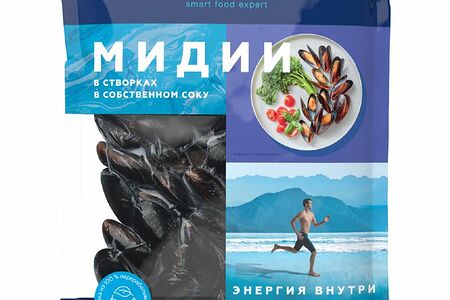 Мидии в створках Agama в собственном соку варёно-мороженые, 450г доставка