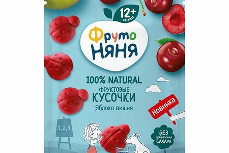 Кусочки ФрутоНяня фруктовые из яблок и вишни с 12 месяцев, 15г доставка