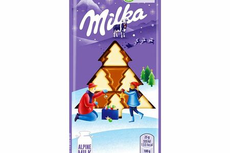 Шоколад Milka Sweet Winter белый и молочный в виде ёлочек, 100г доставка