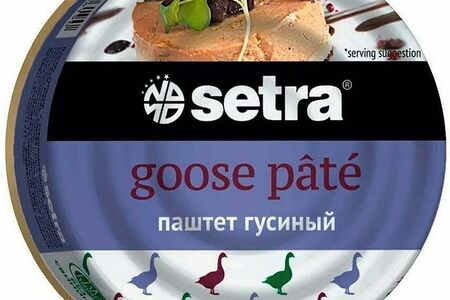 Срок годности в днях: 1095Состав: Мясо гуся, мясо курицы, вода, растительное масло, печень куриная, молочный белок, кукурузный крахмал, картофельный крахмал, специи, соль.Пищевая ценность: Калорийность: 294Белки: 9Жиры: 28Углеводы: 1.5Страна изготовления: СербияПроизводитель: Setra