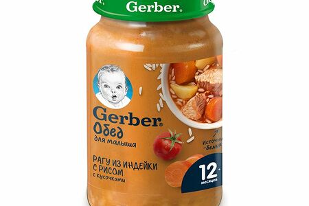 Пюре Gerber Рагу из индейки с рисом с 12 месяцев, 190г доставка
