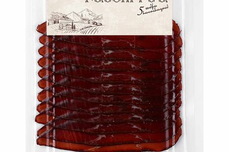 Срок годности в днях: 180Состав: Говядина, соль поваренная пищевая, перец черный молотый, смесь перцев (паприка, перец черный горошком), базилик, кориандр, чаман (пажитник, паприка), смесь посолочно-нитритная (соль, фиксатор окраски нитрит натрия.Пищевая ценность: Калорийность: 295Белки: 26.3Жиры: 15Углеводы: 5.7Страна изготовления: РоссияПроизводитель: SD