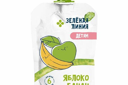 Пюре из яблок и банана с 6 месяцев Зелёная Линия, 90г доставка