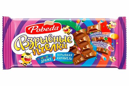 Шоколад молочный Pobeda Взрывные пчёлки мини-драже и взрывная карамель, 80г доставка