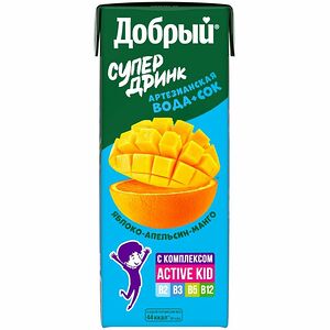 Срок годности в днях: 365Состав: Апельсиновый сок, пюре манго, мандариновый сок, сахар (s)** или сахар и глюкозно-фруктозный сироп (g)**, регулятор кислотности – лимонная кислота, вода. **- буква-код используемого ингредиента – см. на верхней панели пакета.Пищевая ценность: Калорийность: 55Белки: 0.2Жиры: 0Углеводы: 13Страна изготовления: РоссияПроизводитель: Любимый