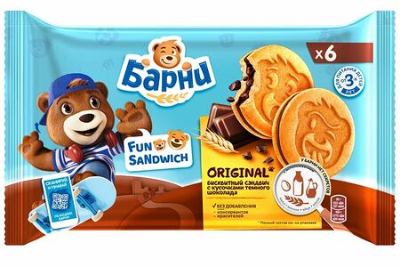 Пирожное Медвежонок Барни бисквитное с кусочками тёмного шоколада, 180г доставка