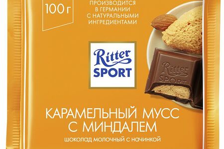 Шоколад молочный Ritter Sport карамельный мусс с миндалём, 100г доставка