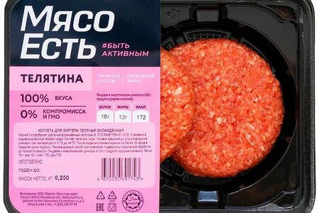 Котлеты телячьи Мясо Есть! для бургеров категории Б охлаждённые, 200г доставка