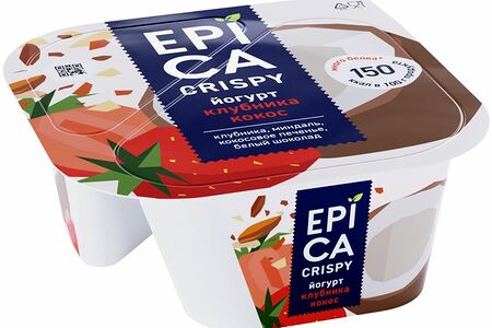 Йогурт Epica Crispy кокос-миндаль-шоколад-клубника-смесь печенья 7.3%, 138г доставка
