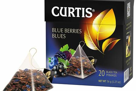 Чай Curtis Blue Berries blues чёрный чёрная смородина-ежевика-черника-василёк в пирамидках, 20х1.8г доставка