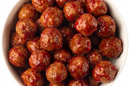 Фрикадельки из говядины и свинины жареные в брусничном соусе доставка