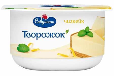 Срок годности в днях: 40Состав: Изготовлен из творога (молоко обезжиренное пастеризованное с использованием закваски; пищевых добавок: ферментных препаратов животного происхождения - пепсина, химозина); сливок пастеризованных; наполнителя "Чизкейк" (сахар, глюкозо-фруктозный сироп; бисквит; молоко цельное сгущённое с сахаром; лимонный сок концентрированный; яичный порошок; пищевые добавки: стабилизатор - дикрахмалфосфат оксипропилированный; ароматизаторы - "Сырный пирог", "Бисквит"; регулятор кислотности - лимонная кислота; краситель - бета-каротин); сахар; пищевой добавки - стабилизатора (желатин; пищевые добавки: стабилизаторы - камедь рожкового дерева, гуаровая камедь). Содержит глютен, сою, яйцо. Может содержать следы ореха.Пищевая ценность: Калорийность: 107.5Белки: 7Жиры: 3.5Углеводы: 13Страна изготовления: Республика БеларусьПроизводитель: Савушкин