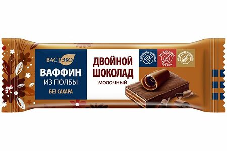 Вафли Вастэко Ваффин из полбы двойной шоколад без сахара с молочным шоколадом глазированные, 27г доставка