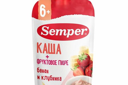 Пюре Semper бананово-клубничное с кашей с 6 месяцев, 120г доставка